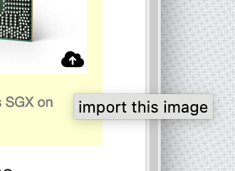 If you have images items that were created using an old version of this plugin. Those images probably only exist embedded in the page. You can update how those images are stored by clicking on the *import this image* (cloud) button that floats in the bottom right of image.